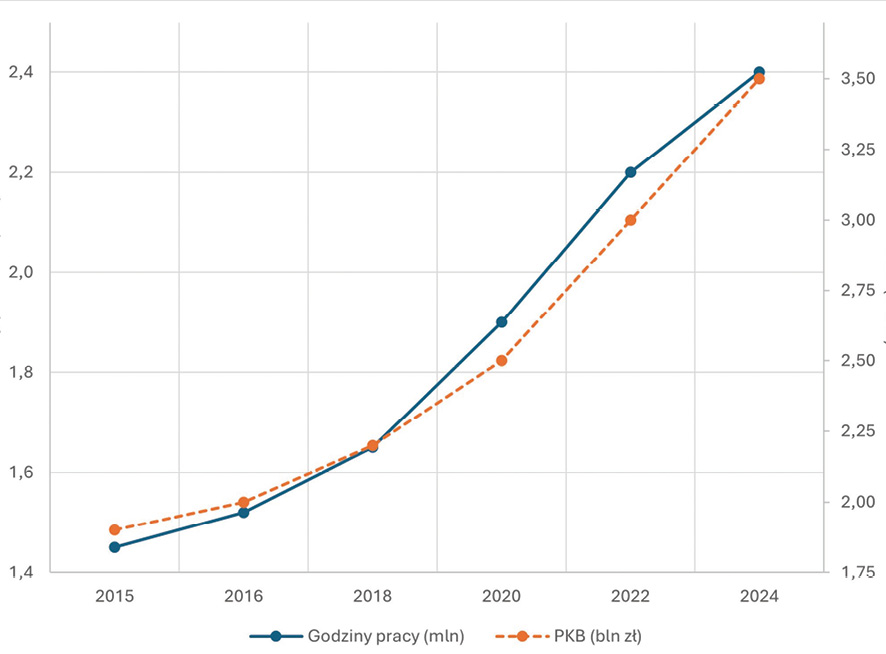 W ciągu ostatniej dekady polskie pszczelarstwo rozwijało się w tempie zbliżonym do dynamiki rozwoju krajowej gospodarki w ujęciu realnym (po uwzględnieniu inflacji). Liczba rodzin pszczelich wzrosła o ok. 67%, z ok. 1,45 mln w 2015 r. do ponad 2,42 mln w 2024 r. Jak widać na Wykresie 1, po 2021 r. dynamika rozwoju sektora pszczelarskiego wykazuje tendencję do stabilizacji, co może wskazywać na osiągnięcie lokalnej pojemności środowiskowej (carrying capacity) w niektórych regionach kraju2. Jednocześnie gospodarka narodowa, pomimo globalnych zawirowań, utrzymuje stabilny trend wzrostowy. Analiza relacji pomiędzy tymi wskaźnikami sugeruje, że pszczelarstwo staje się trwałym i odpornym elementem zrównoważonego rozwoju obszarów wiejskich – rozwija się w tempie zbliżonym do dynamiki PKB, jednak w sposób znacznie bardziej zrównoważony i środowiskowo korzystny.
